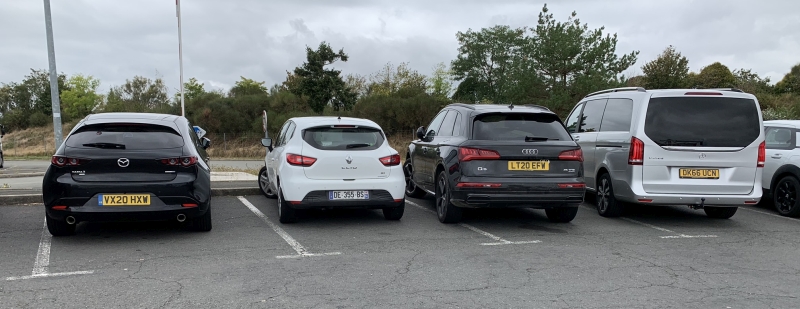 Trying to squeeze Clio between English cars. British car parking at its finest.