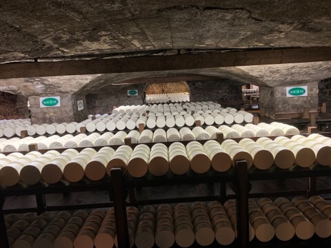 Next stop was Roquefort. Cheese that smells like dirty socks is a bit divisive, but we like it, so could not pass by without a tour of the Roquefort cheese caves. The tour was entirely in French, but we gathered that it is made from milk from a very particular type of sheep which is sprinkled with powdered mould and left to do its magic in the caves which are at a constant temperature of 10 degrees.