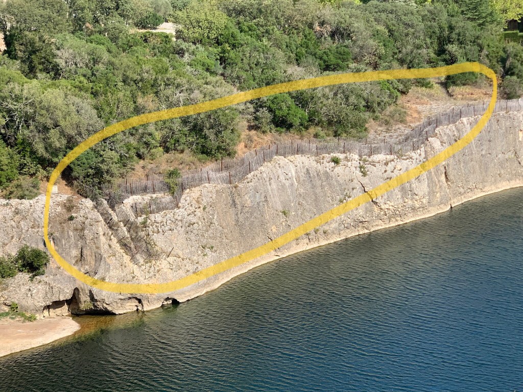 Arrow points to the front door of what is probably a sizeable home built into the chalky hillside.
