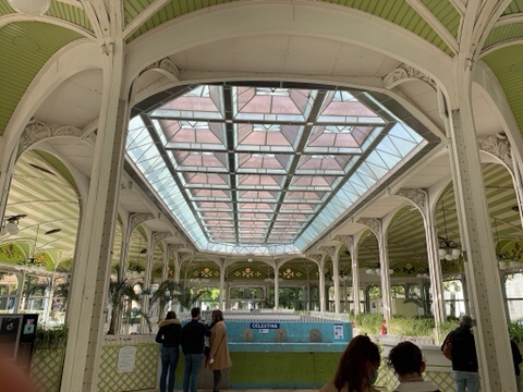 Most recently, it became the seat for the French Government in 1940 because Paris was part of the German military occupation zone. Vichy was in the “Free Zone” and chosen because there was a direct train line from Paris, there was a telephone system already in place, and also there were many hotels and substantial buildings that were converted to government offices. The reason why there were so many suitable buildings was because of the other reason….