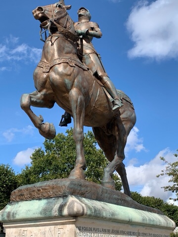 This is Joan of Arc, who stopped by Blois in 1429 and visited the castle in order to be blessed before she defeated the English at Orleans.