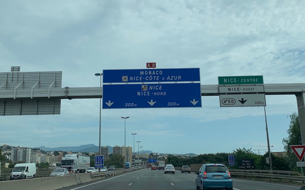 After we left Hyères, we headed east along the Côte d’Azur along with a squillion huge trucks and semi trailers. It’s obviously a very busy stretch of road, probably the main route between Italy and Spain. Most trucks seem to travel in convoy and have to stick to the same lanes so that was a relief for little Clio when we saw them struggling up the many steep hills and through tunnels on the highway. We were staggered by the number of houses along the way that were built into impossibly steep rocky slopes. Land is at such a premium and a view of the Mediterranean is worth a lot.