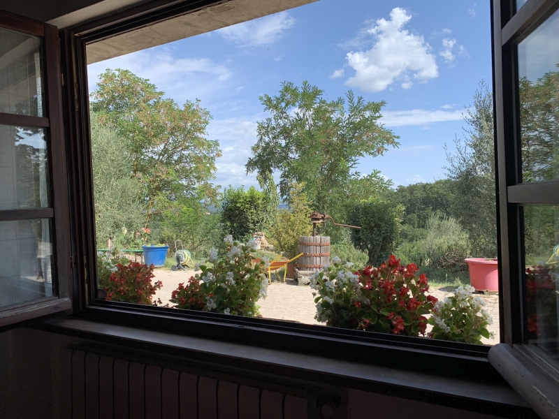 The things you find out on a guided tour! This little extension is a toilet. Back in the day, people would do their business in these little appendages. Then at night time they could just open the trap door and empty the contents on to the lane below. But not permitted during the daytime.View at lunchtimeNo Tuscan view is complete without a few olive trees.No prizes for guessing what this is.