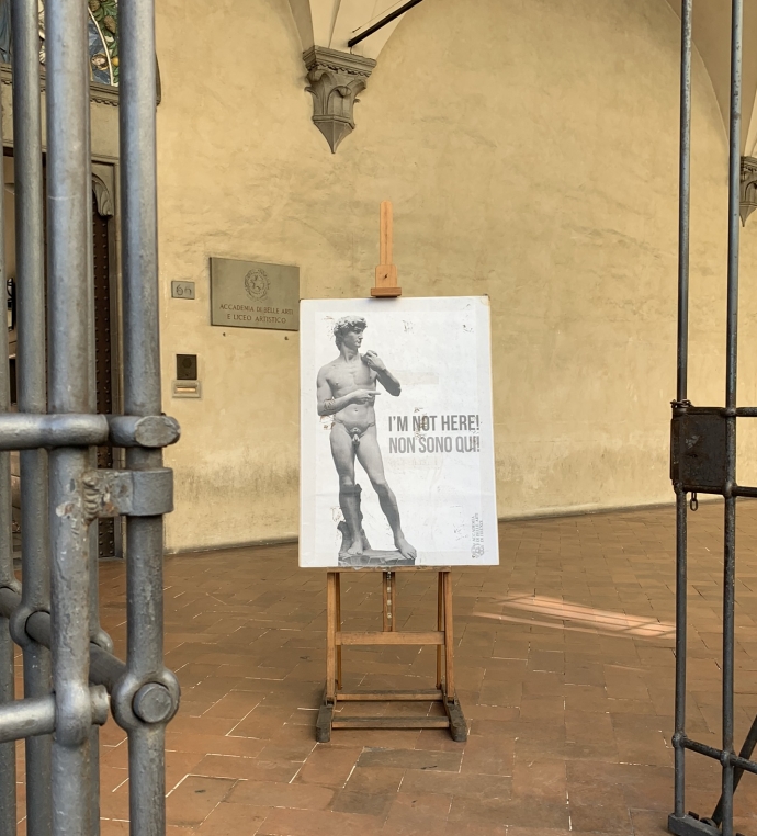 The original statue of David is in the Accademia Gallery and just down the road there is a university that looks just like a museum. Here is the entrance to the university and their staff obviously get sick of tourists wandering in looking for David.