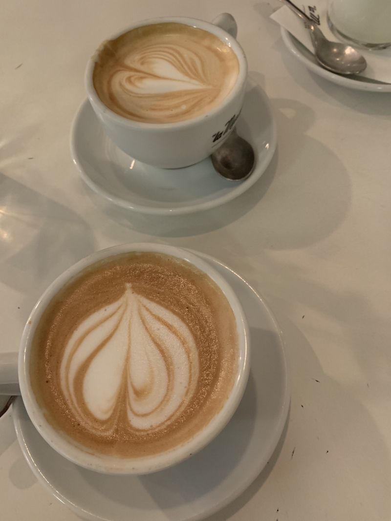 Cappuccinos in Italy are much the same as you would get if you ordered a flat white in Australia. Never saw any chocolate sprinkled on top.