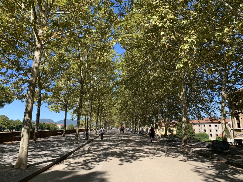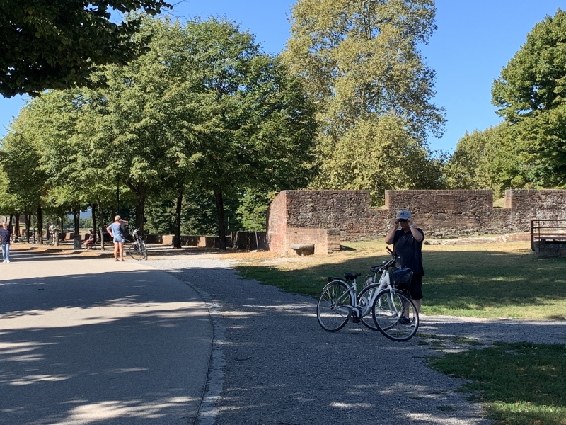 Anyway, Day 5 – we caught a train from Florence to Lucca, a little over an hour away. Lucca is a small town best known for its very well preserved wall that surrounds the old part of the town. The wall itself is really wide as it was built when cannons, rather than bows and arrows were the weapon of choice. Now the top of the wall is very busy with walkers and bike riders. We hired a couple of bikes and did the 4 km circuit. Twice. Once clockwise and then anti-clockwise. The weather was perfect and not too crowded.