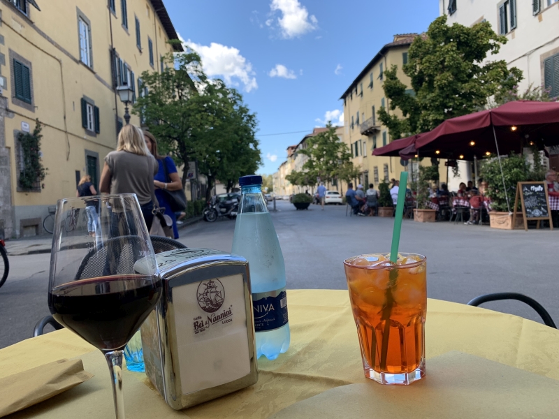 Every bike ride in Lucca should end with a chianti or an aperol spritz.