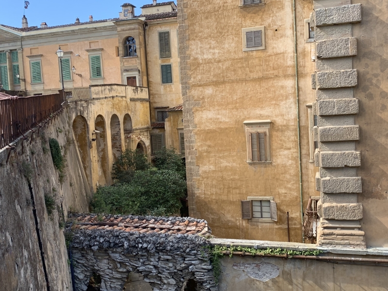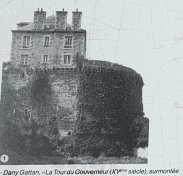 The promenade on the left. This is a long way up from the river so filling that moat with water must have been challenging.Another part of the original wall. This gives a sense of how hilly the town is.This is the Governor Tower. In the 19th century it was sold to private citizens who built a massive house on top (see below). It was eventually bought back by the municipality and the house was demolished in 1990.