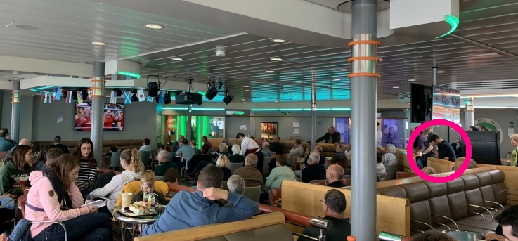There was a sizable group of English and French people (nearly all men) sitting watching the match and if you saw it, then you would know it was a bit of a nail biter. The photo was taken a few minutes before full time. Wales had just scored and put them in front for the first time in the match. The score was Wales 20, France 19. Could go either way. The crowd roared – nope, not a bit. Apart from a baby making noises and the commentary on the TV, it was so quiet. Nobody yelling at the players or complaining about the refereeing or cheering on their team. Nobody was making a sound. Put Australians in this scenario and you would have heard them all over the ferry.