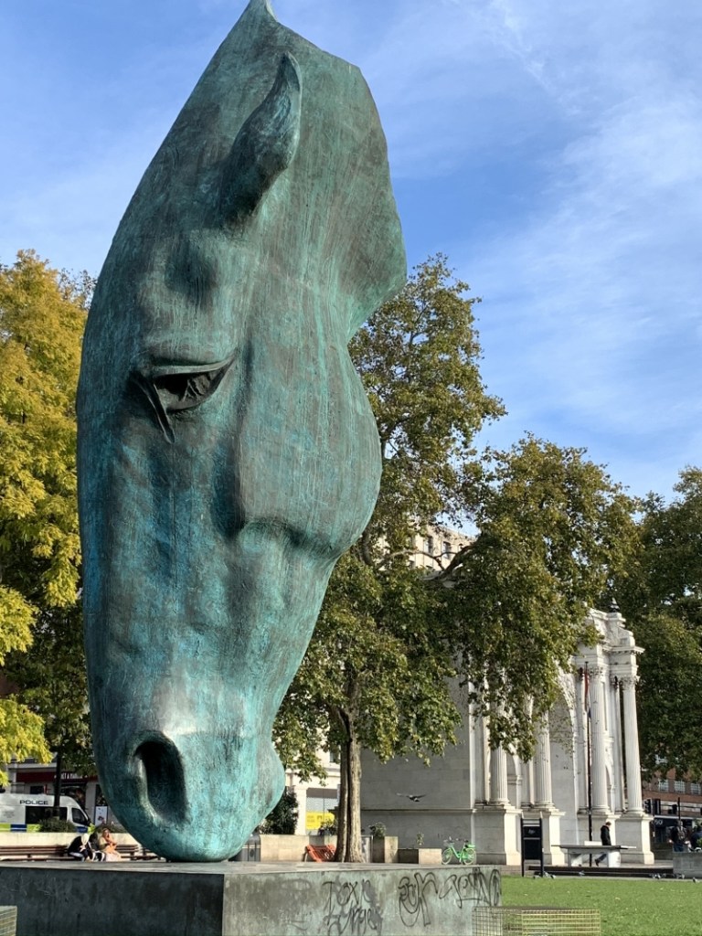 And in keeping with the animal sculptures, a few metres away is this horse statue. Usually horse statues are the base for showing off military or royal figures, but this one, created by Nic Fiddian-Green is called Still Water. The artist is well known for his horse sculptures and he has a number of these dotted around, but this is the biggest. This was installed in 2011 and the pigeons loved it so much that Fiddian-Green hired a cherry picker one Sunday morning in 2012 and cleaned it himself.